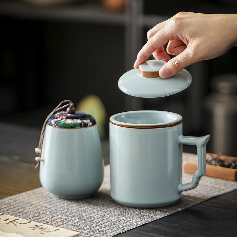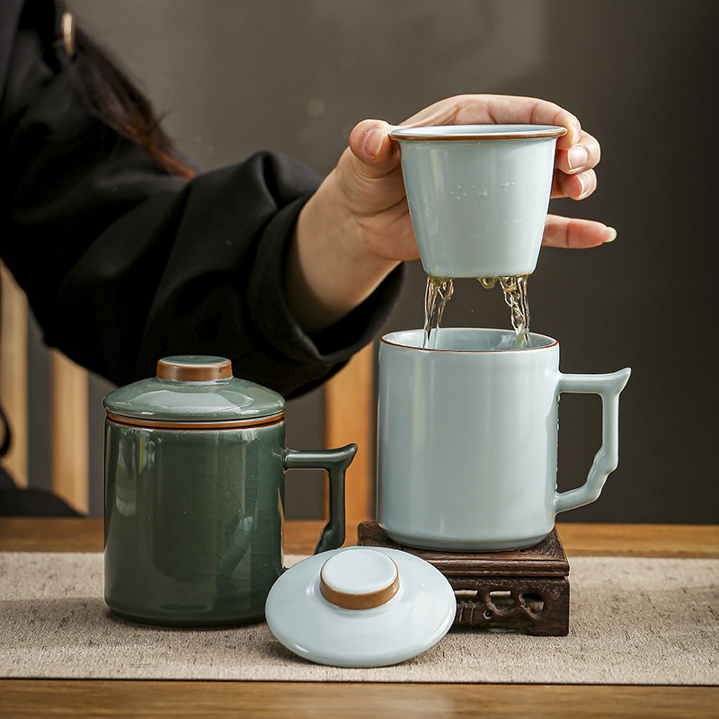 Ruyao tea separation tea cup ceramic cup office mug with lid filter water cup accompanied by gift