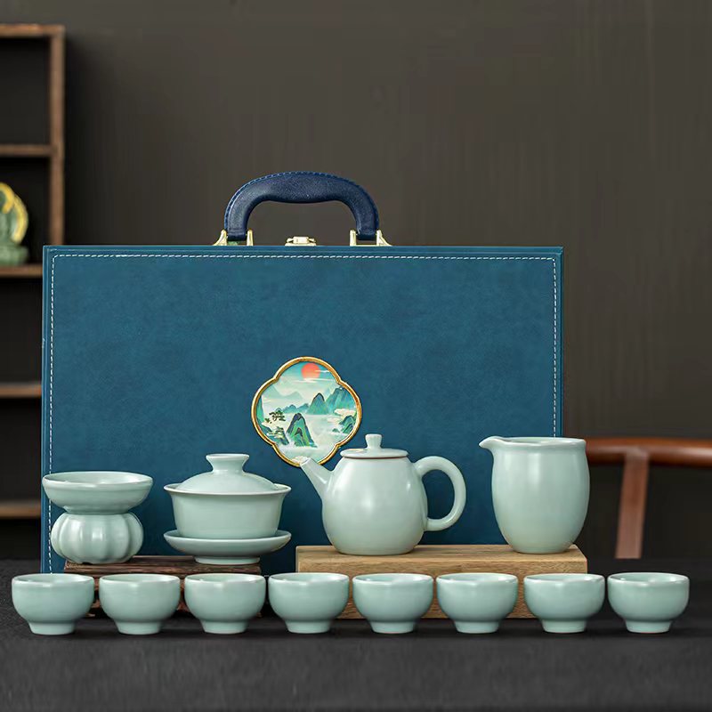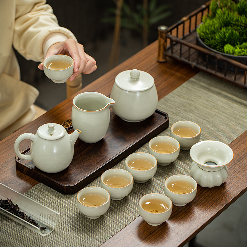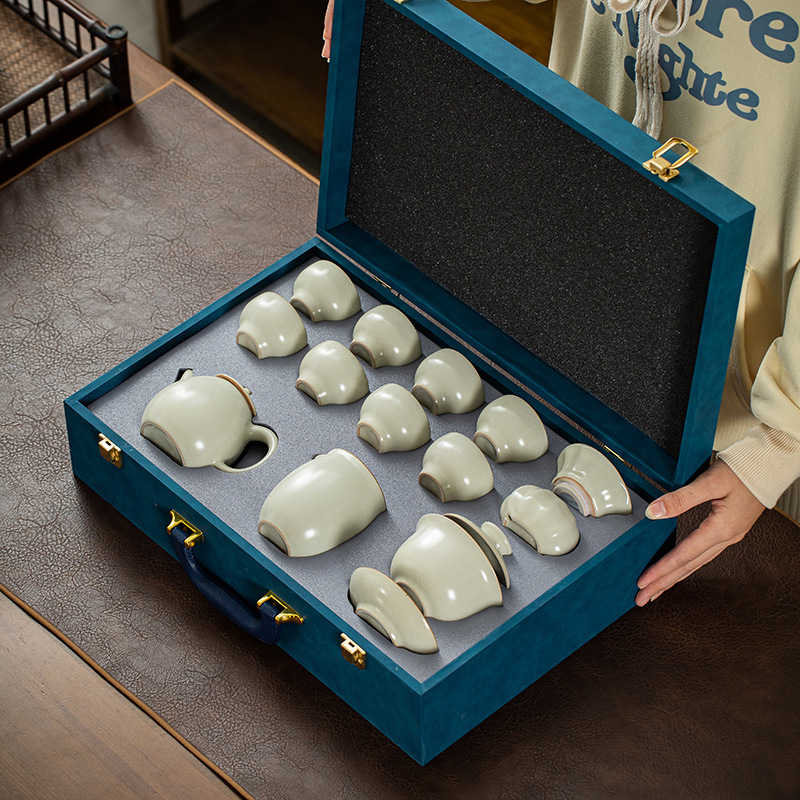 Ru kiln open teapot tea cup art complete set of high-end kung fu tea set home living room office ceramic gift