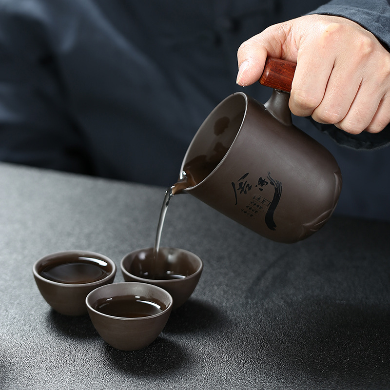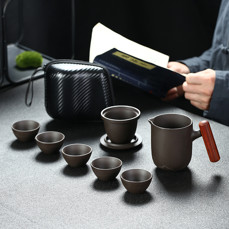 Purple sand concentric cups travel tea set combination portable ceramic teapot Kung Fu Kuaike cups holiday gifts wholesale