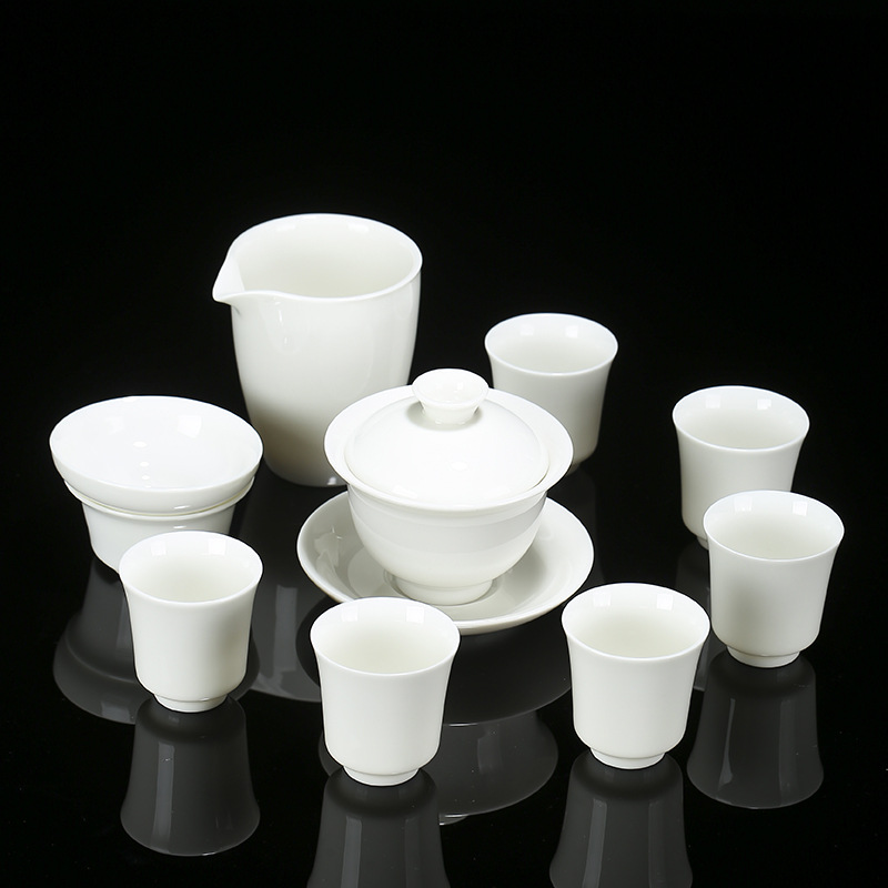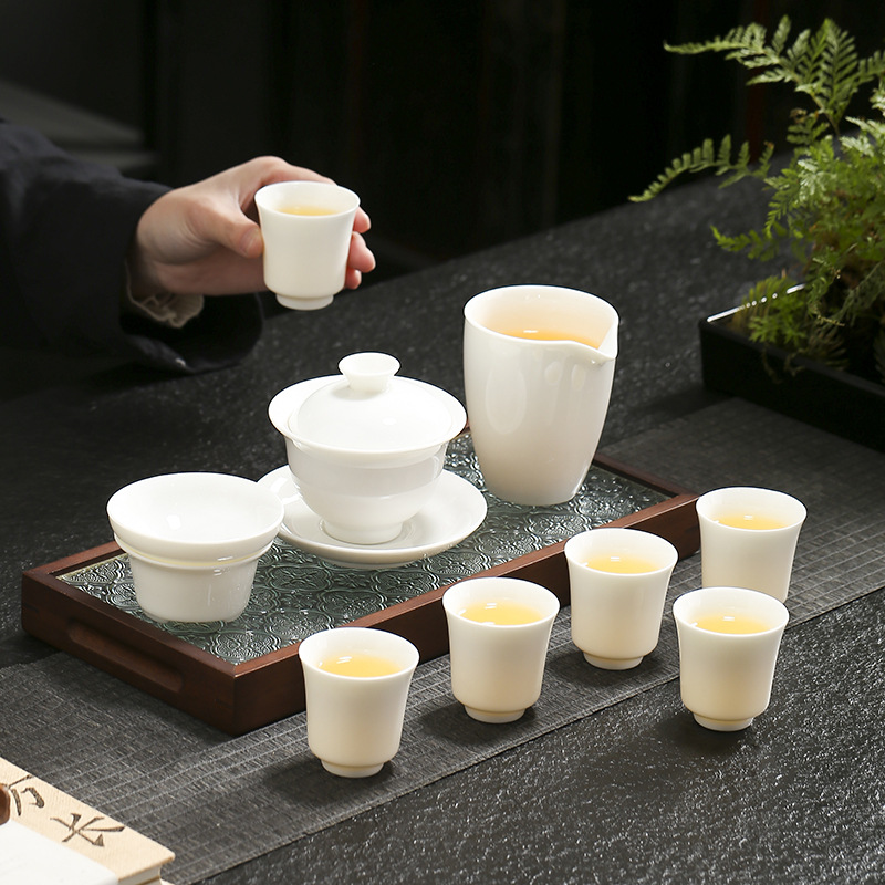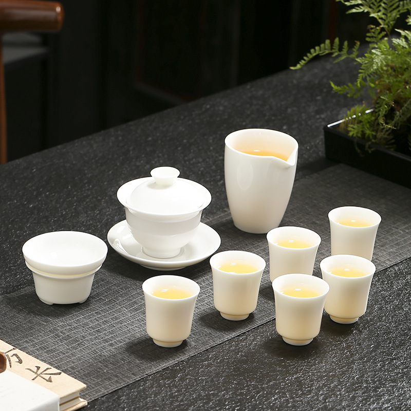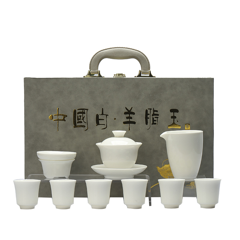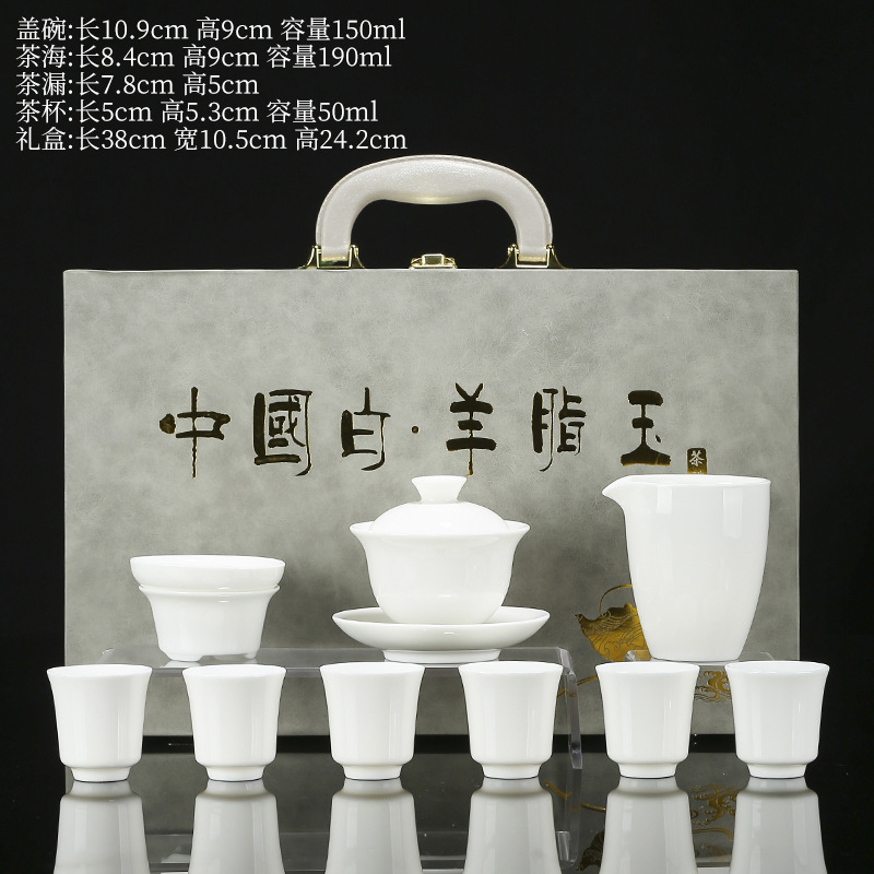 Yangzhi Jade Kung Fu Tea Set 2024 New Style Light Luxury High-end China Style White Porcelain Office Business Gift Box