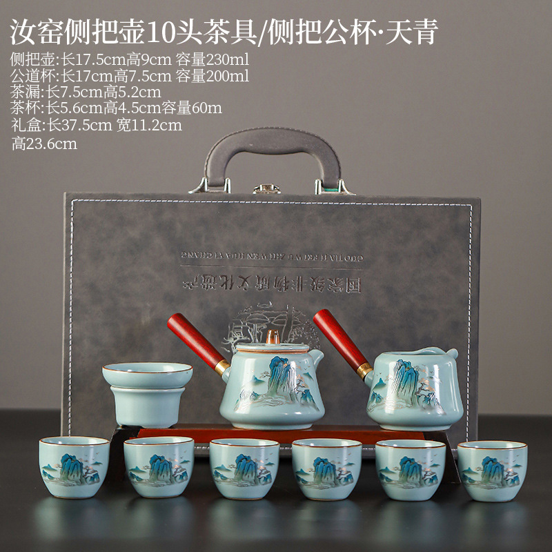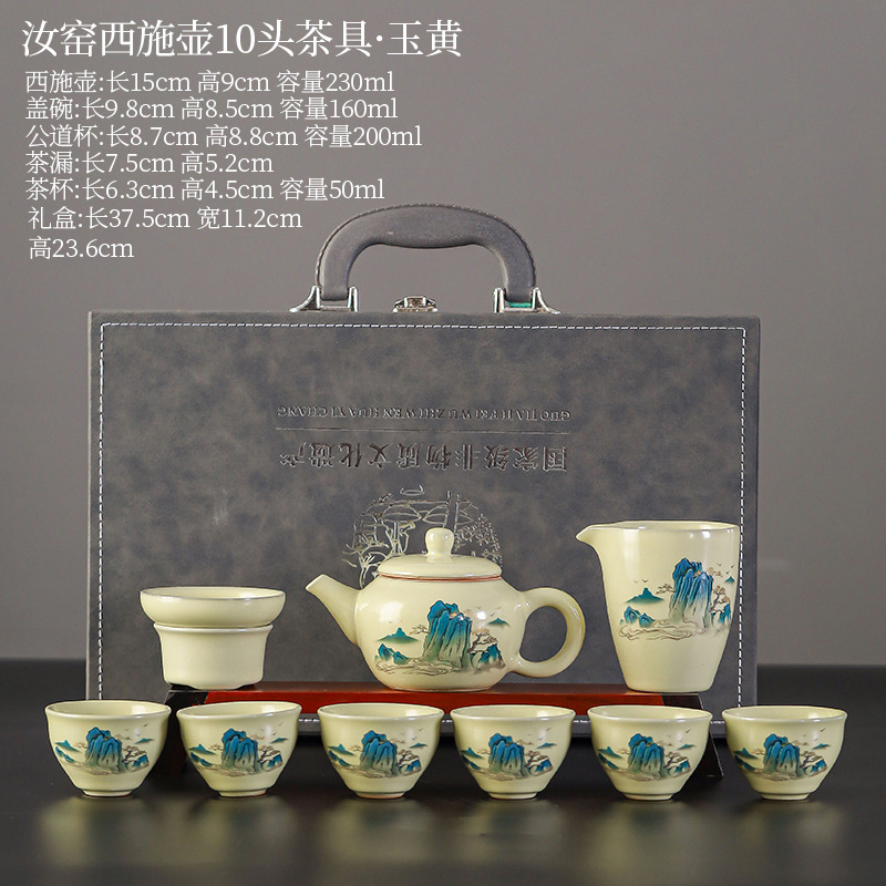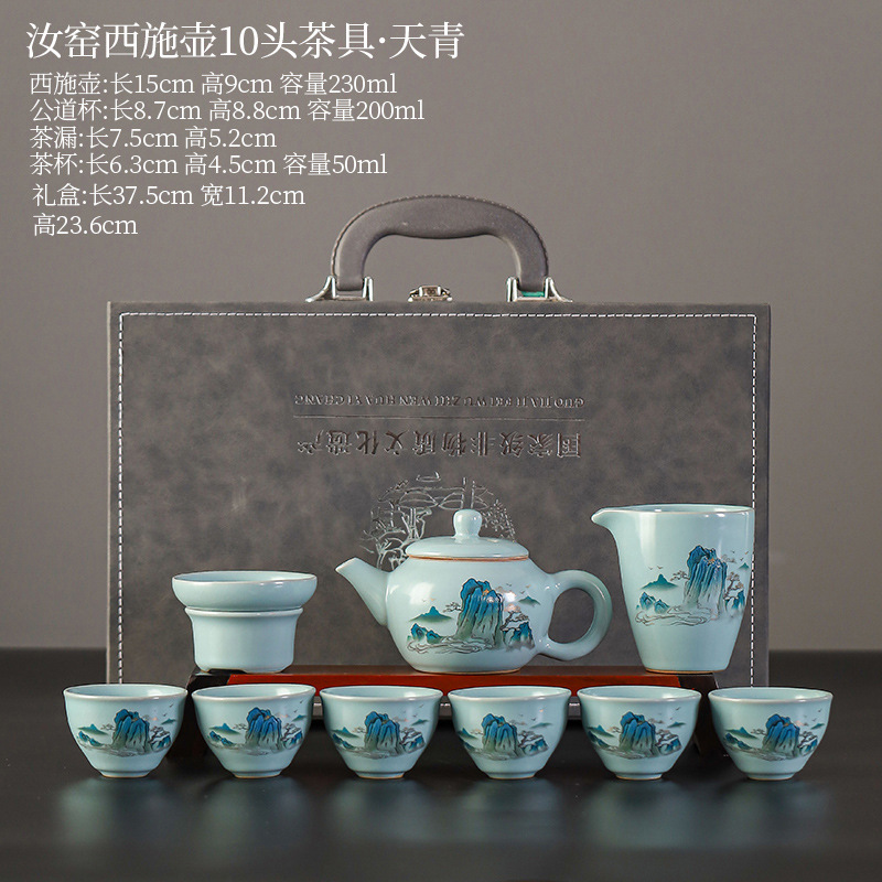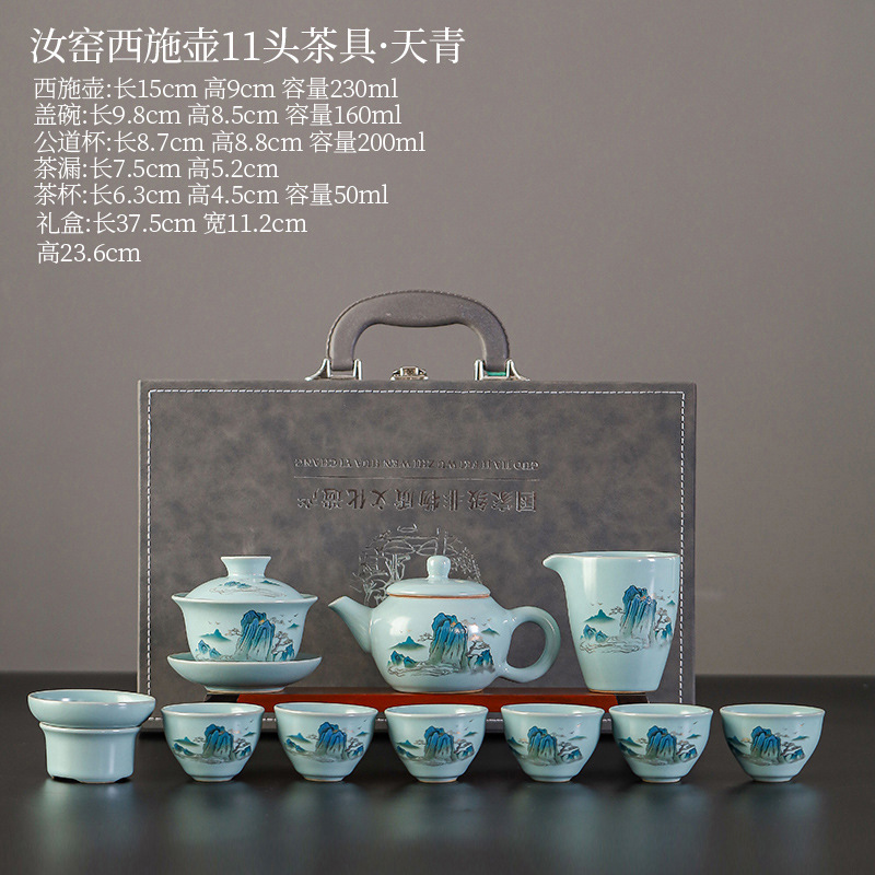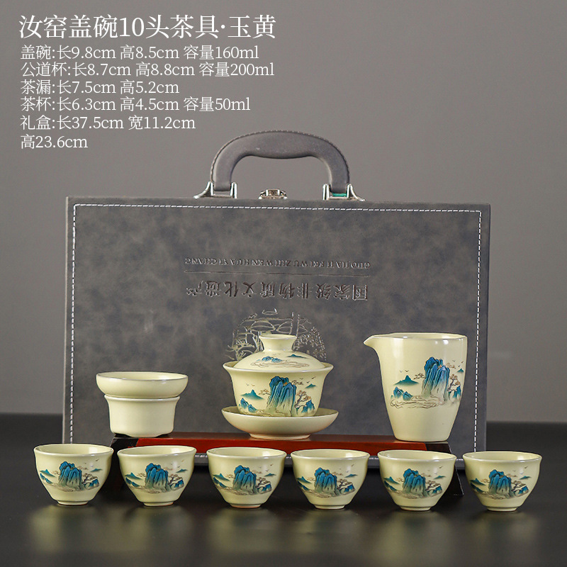 Tianqing Beige Ru kiln open piece high-end teapot cover bowl set ceramic household holiday gift set Kung Fu tea set