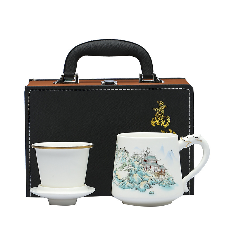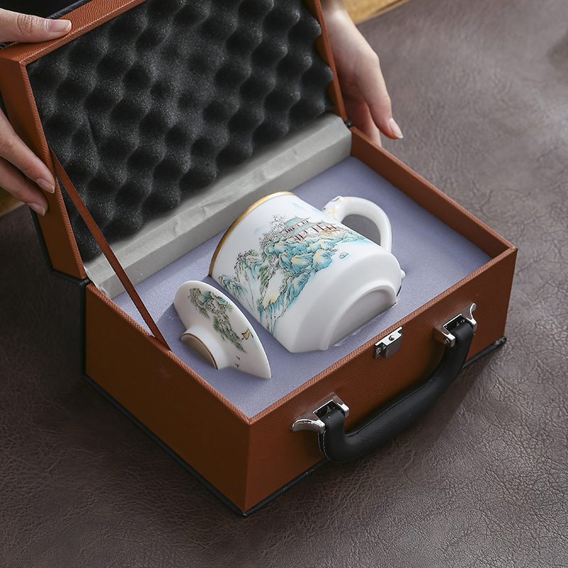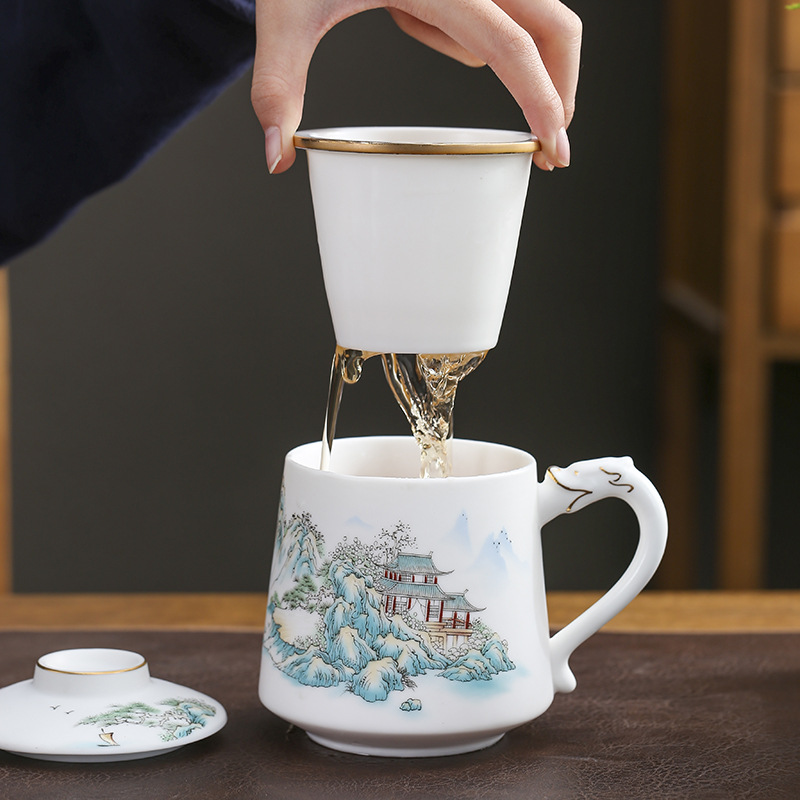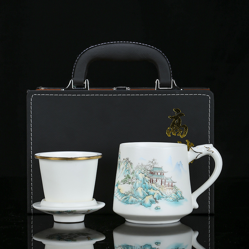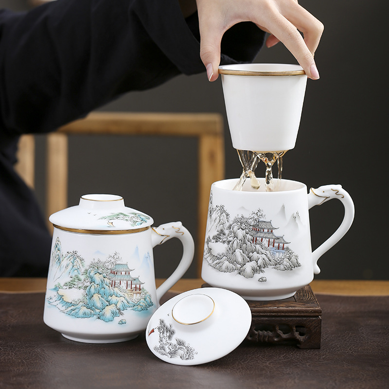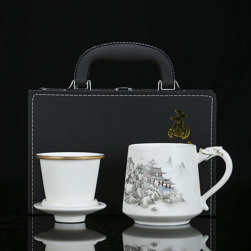 High-end veggie roasted mutton fat jade porcelain tea cup tea separation ceramic tea cup meeting water cup business convenience gift