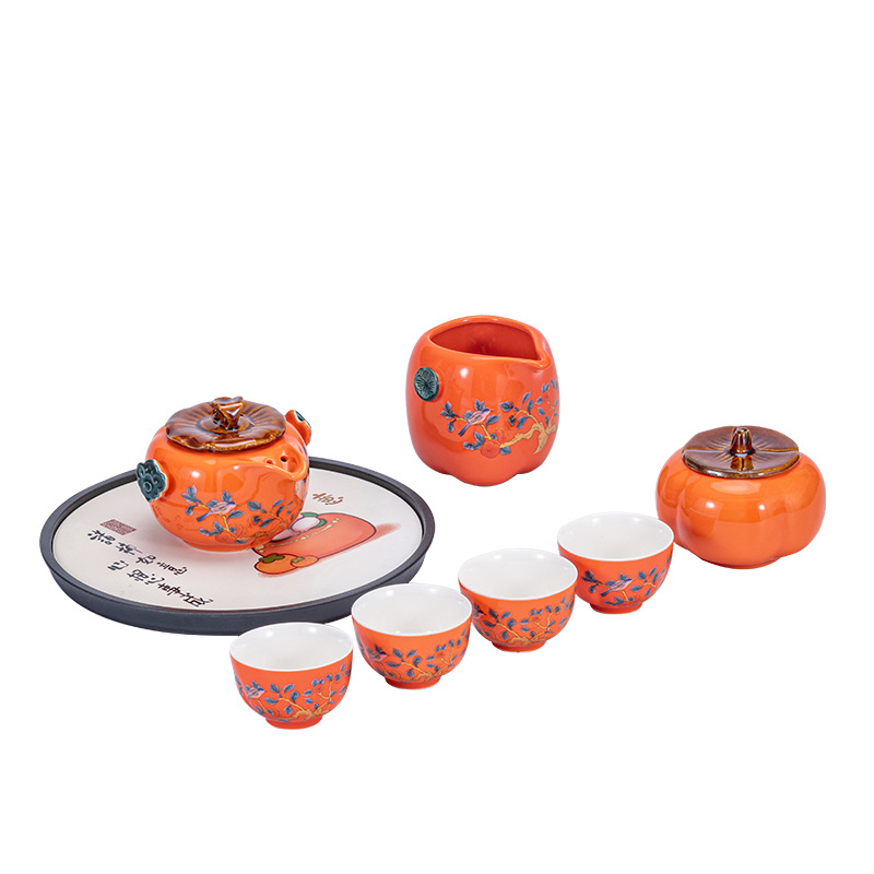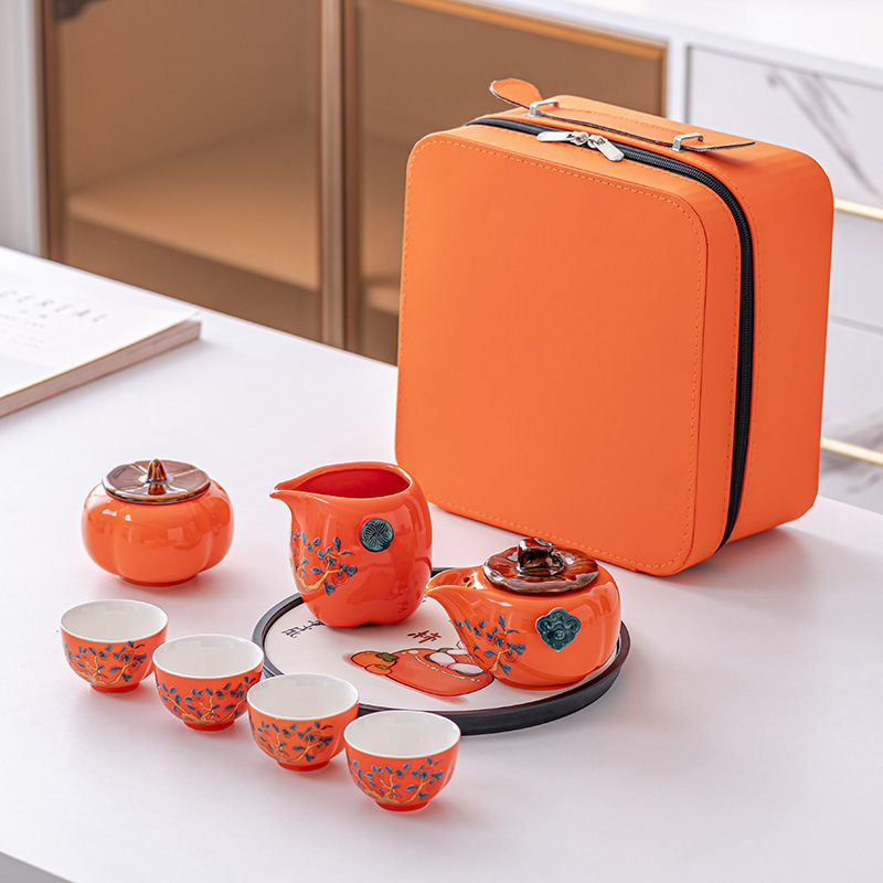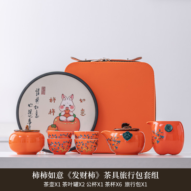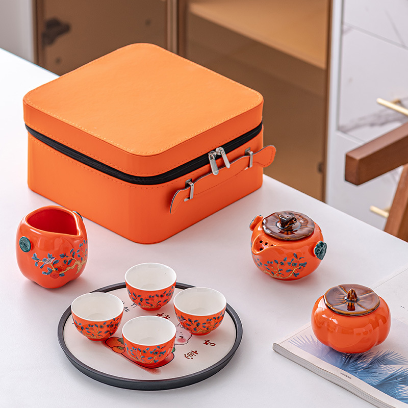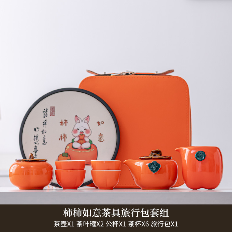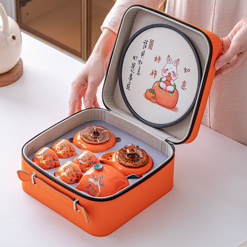 Persimmon Ruyi portable tea making travel tea set tea cup small set dry tea tray storage box accompanied by gift customization