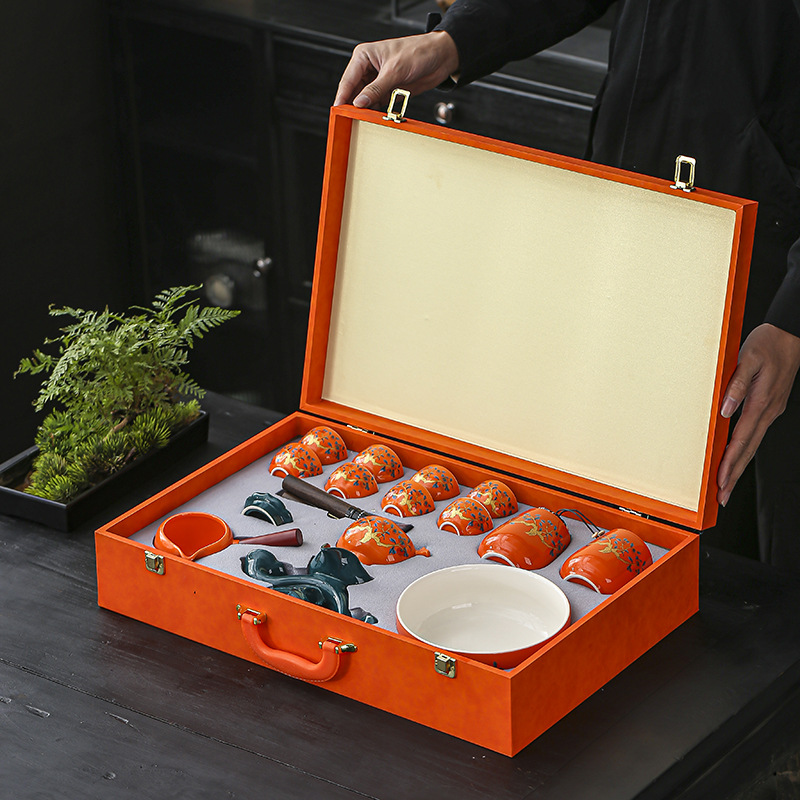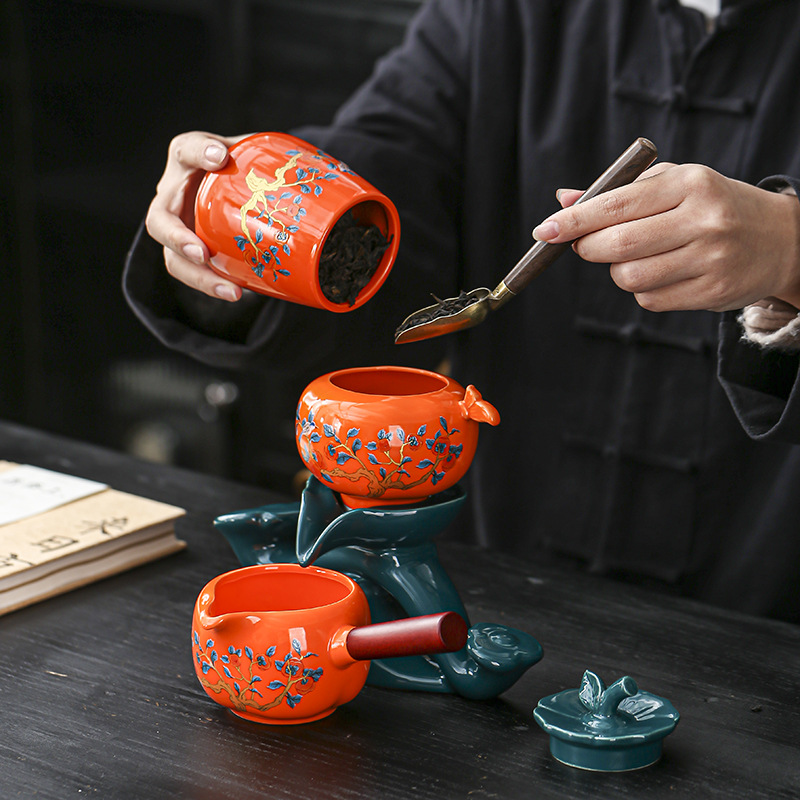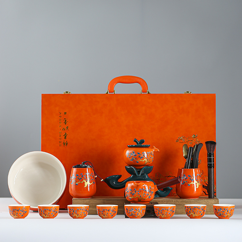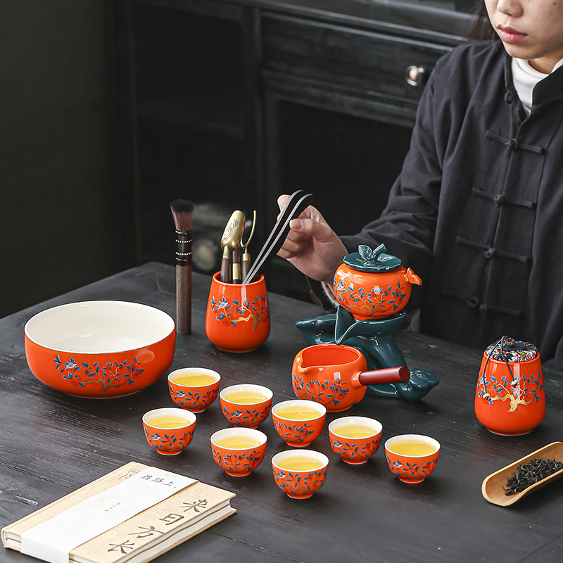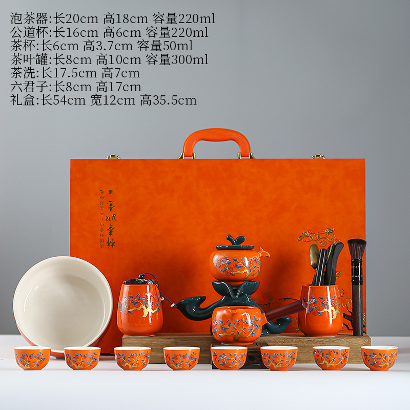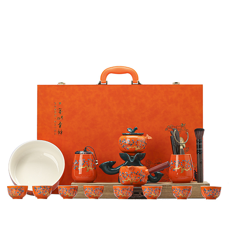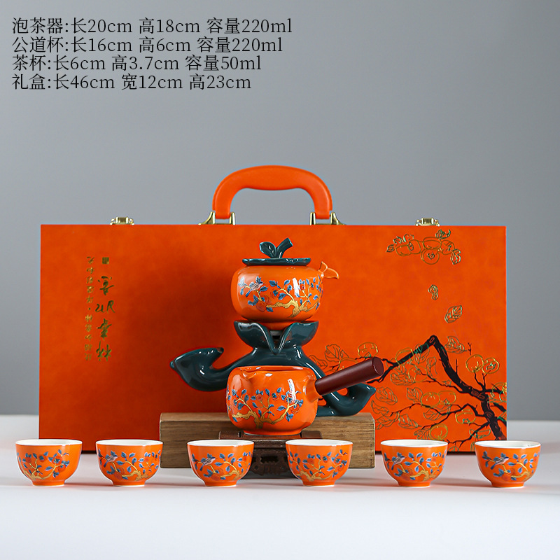 Persimmon Ruyi tea maker, lazy person automatic kung fu tea set, wedding celebration, household light luxury high-end gift box