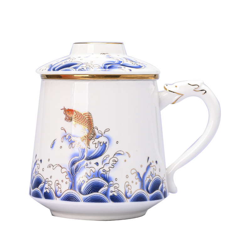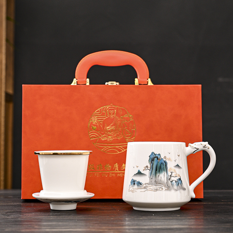 Sheep fat jade porcelain cup tea cup office water cup mug tea making tea with lid filter gift box gift gift box
