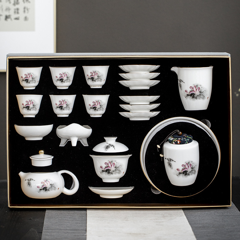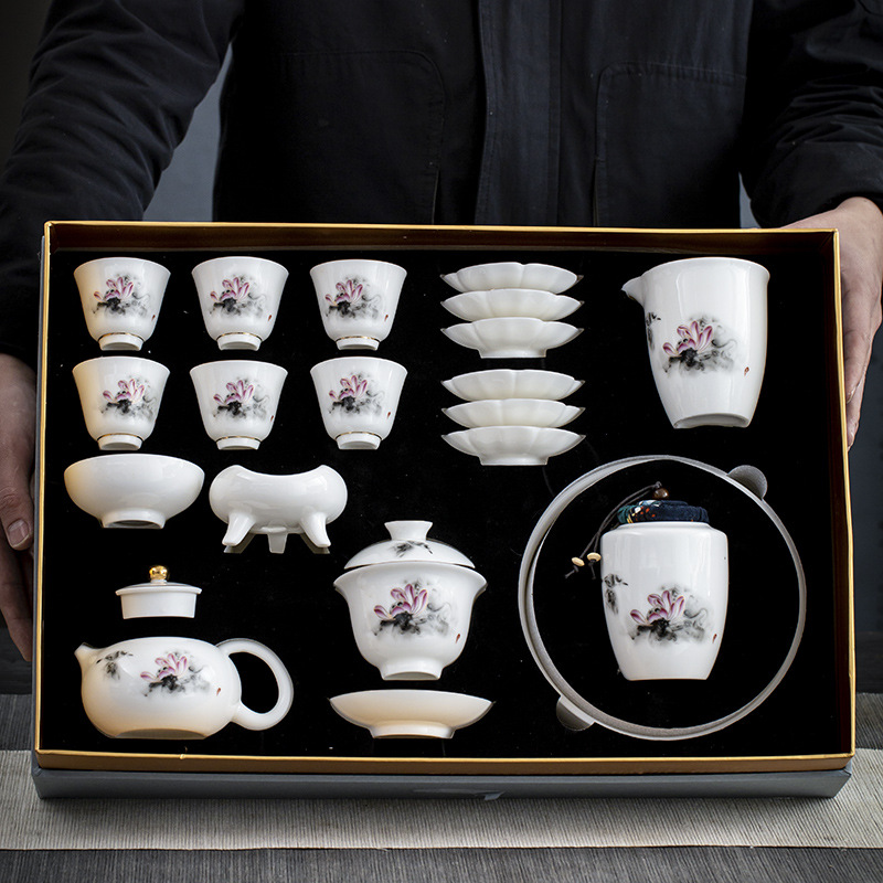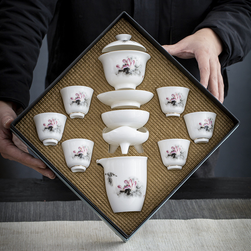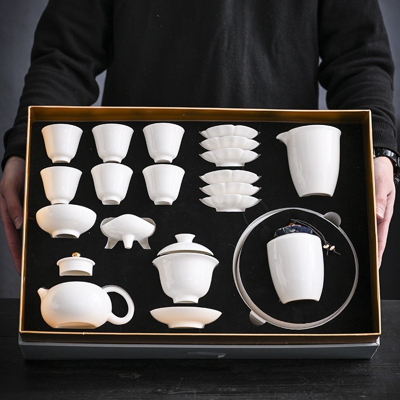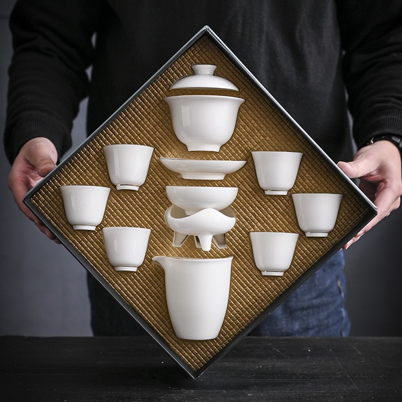 Sheep fat jade porcelain kung fu tea set ultra-thin white porcelain cover bowl household handmade office high-end gift box gift box