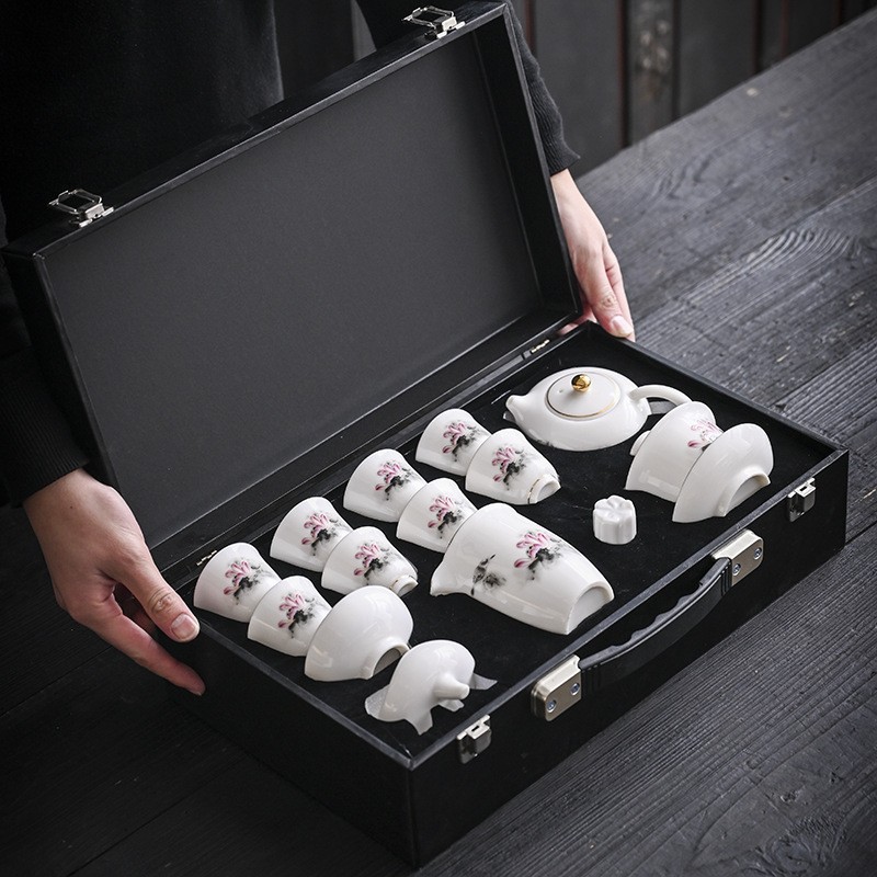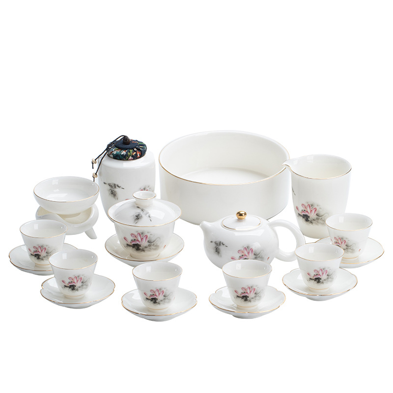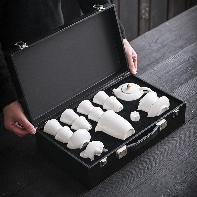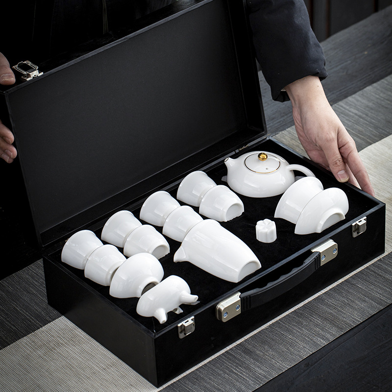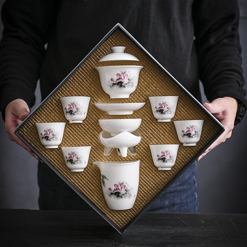 Sheep fat jade porcelain kung fu tea set ultra-thin white porcelain cover bowl household handmade office high-end gift box gift box