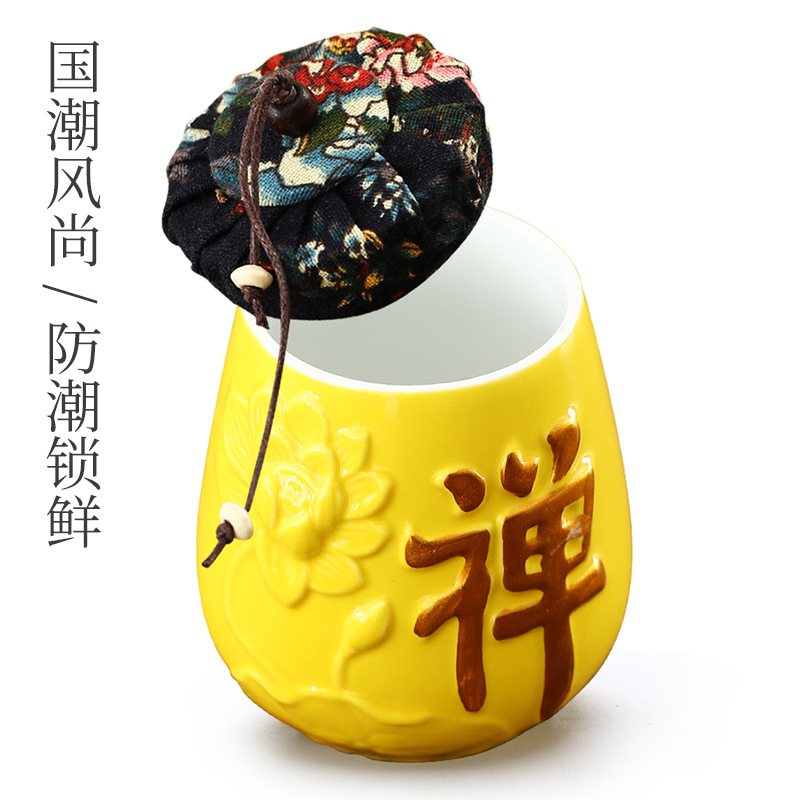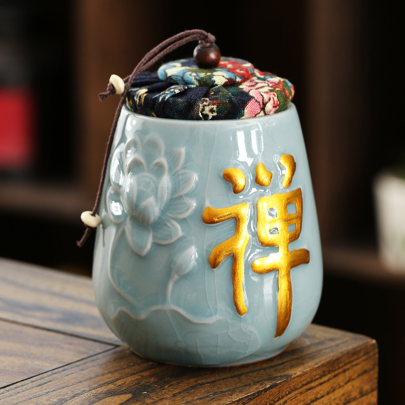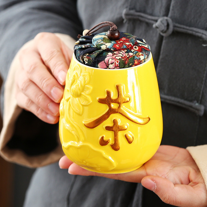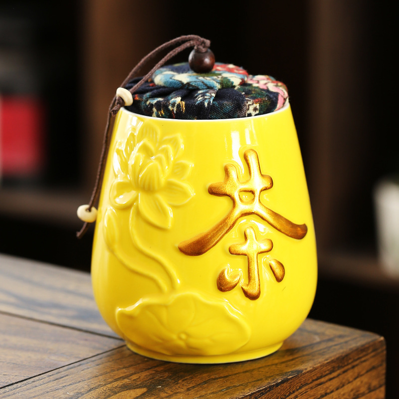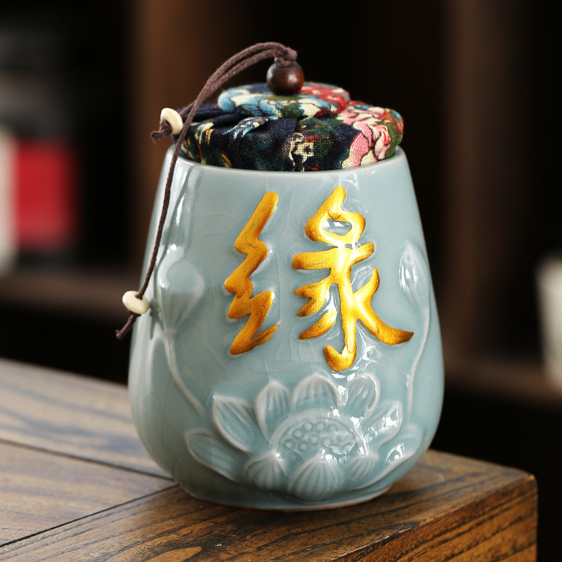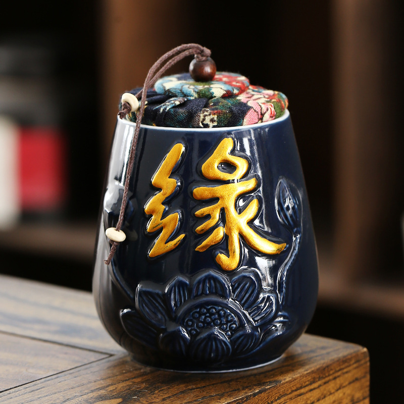 Tea cans, sealed cans, tea cans, size and number, gold-painted ceramic cans, portable storage, Pu 'er green tea, household Ge kiln tea box