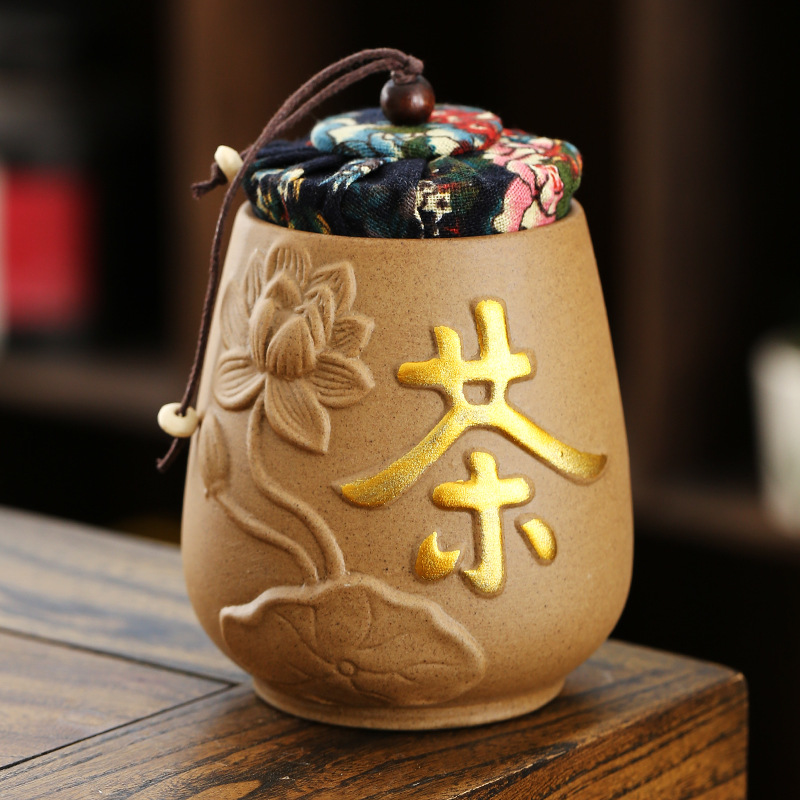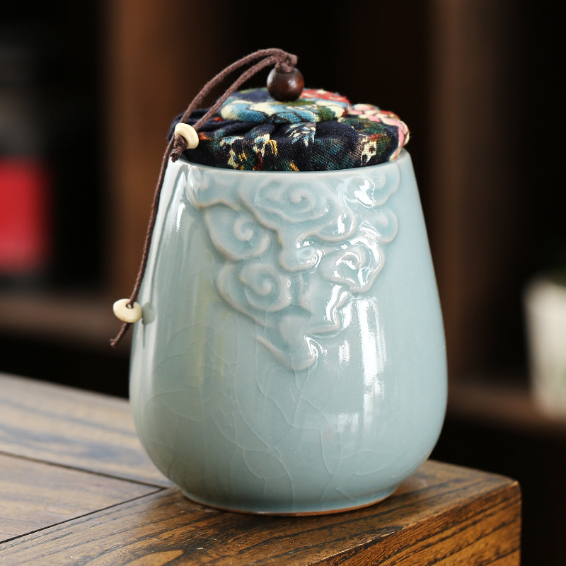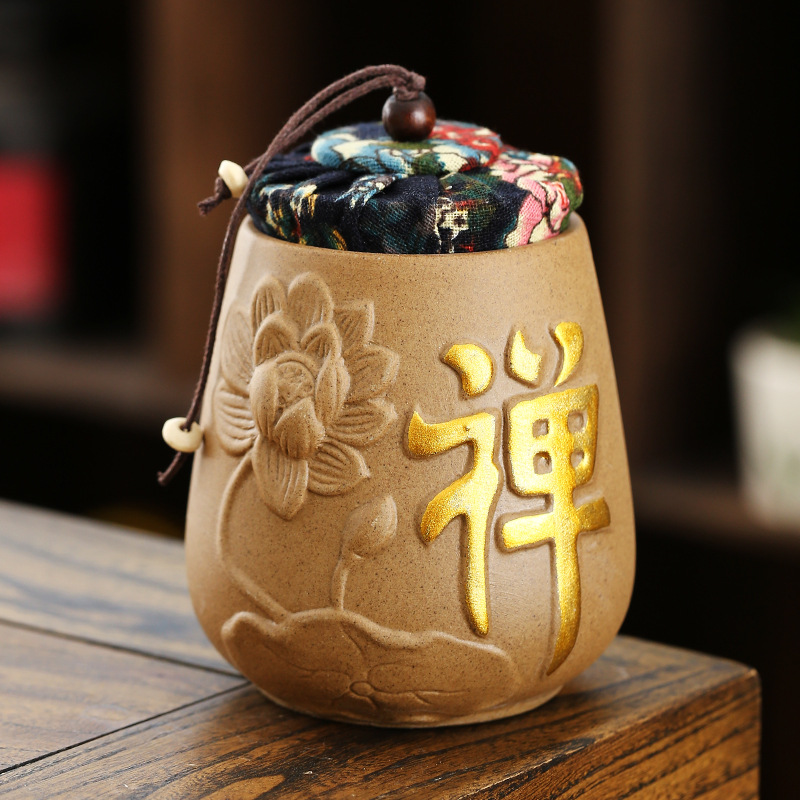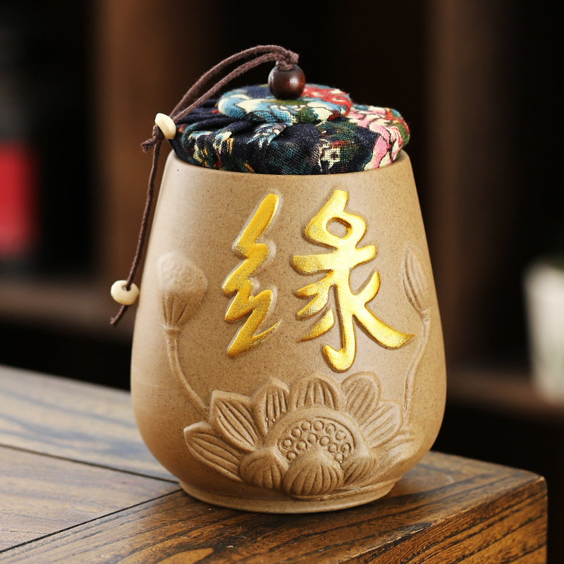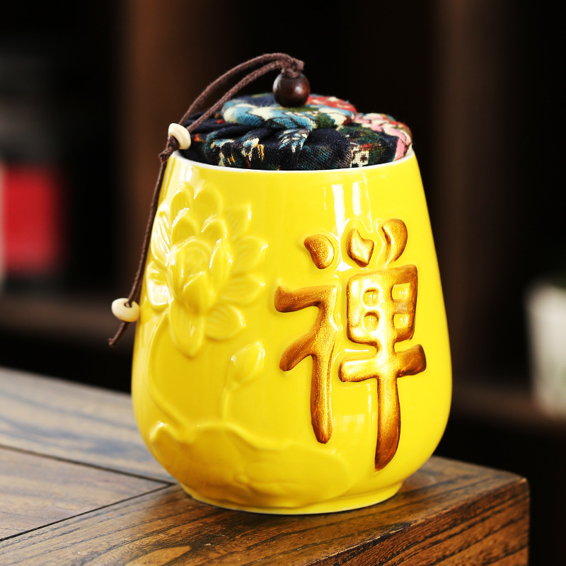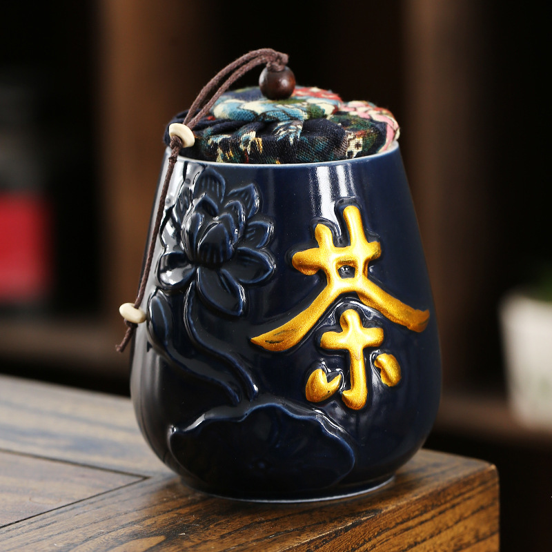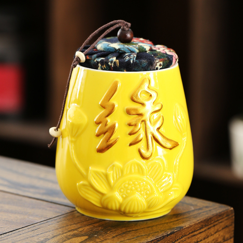 Tea cans, sealed cans, tea cans, size and number, gold-painted ceramic cans, portable storage, Pu 'er green tea, household Ge kiln tea box