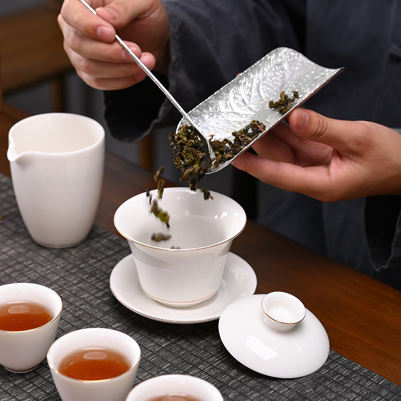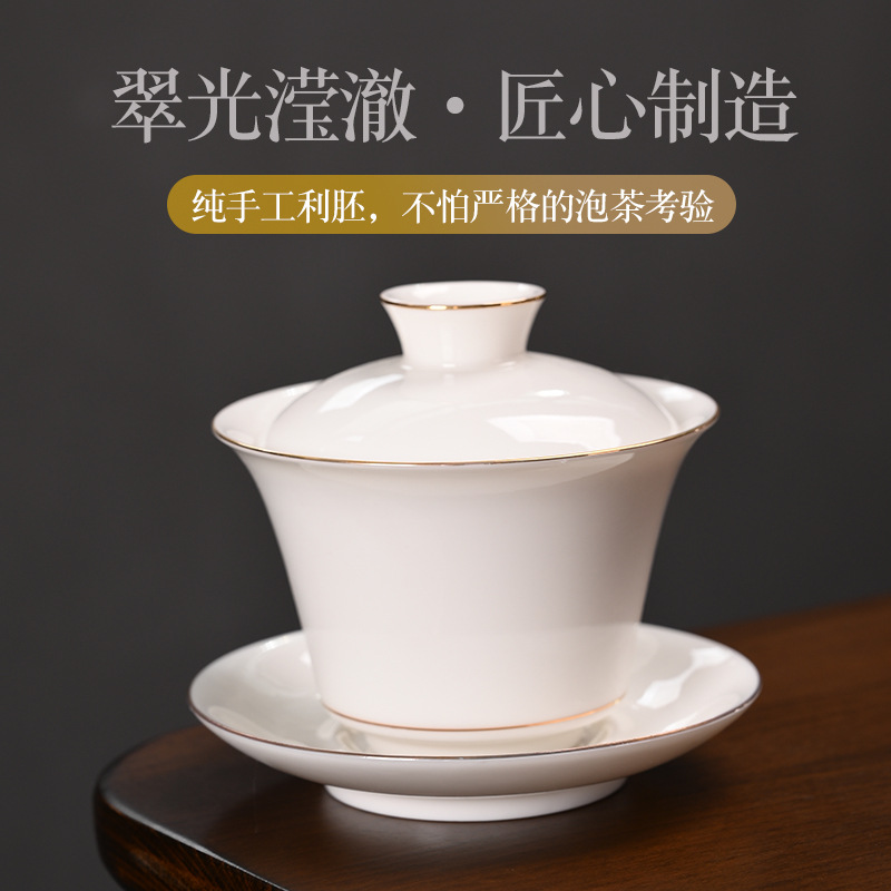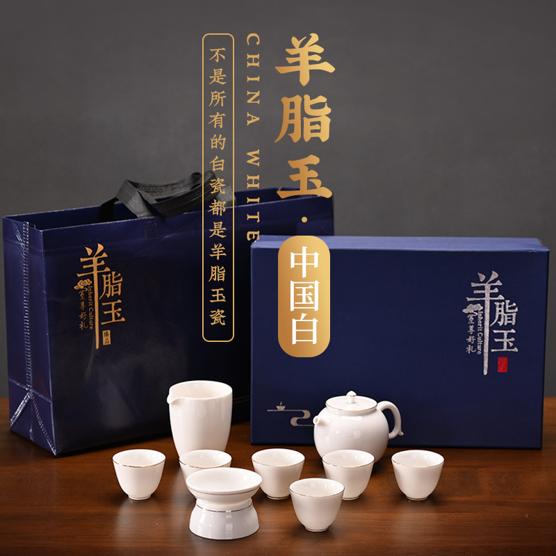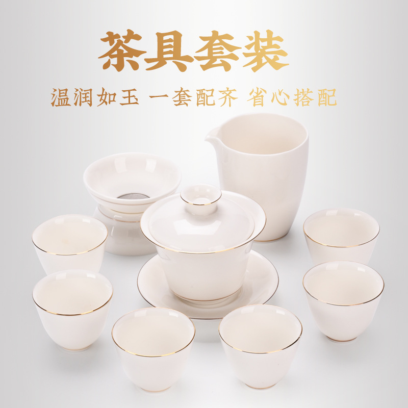 White porcelain complete set of Kung Fu tea set, household mutton fat jade porcelain simple tea pot cover bowl tea cup gift box ceramic
